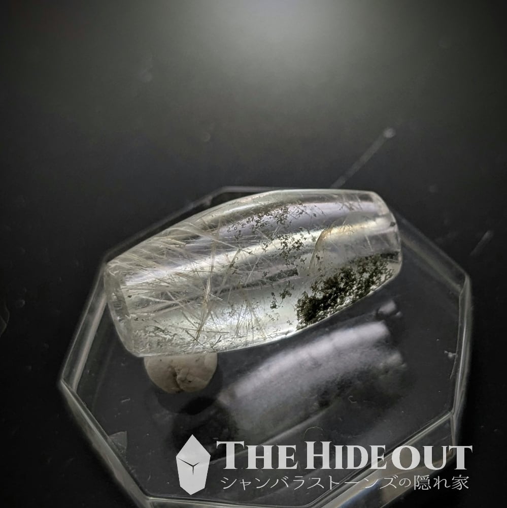 緑泥石に角閃石が舞う世界、ザ・ヒマラヤ水晶です。昔は角閃石を「ルチル」と表記する業者も多かったですが気持ちはわかりますよね。だって見た目ルチルじゃないですか。特にこれのように硬質な金属光沢があるとますます見間違えそうです。いずれにせよ舞うような角閃石に舞うような緑泥石、この2つのコラボは堪りません。サイズもちょうど良く、ブレスレットに組んでも大きすぎず小さすぎずで良いでしょう。