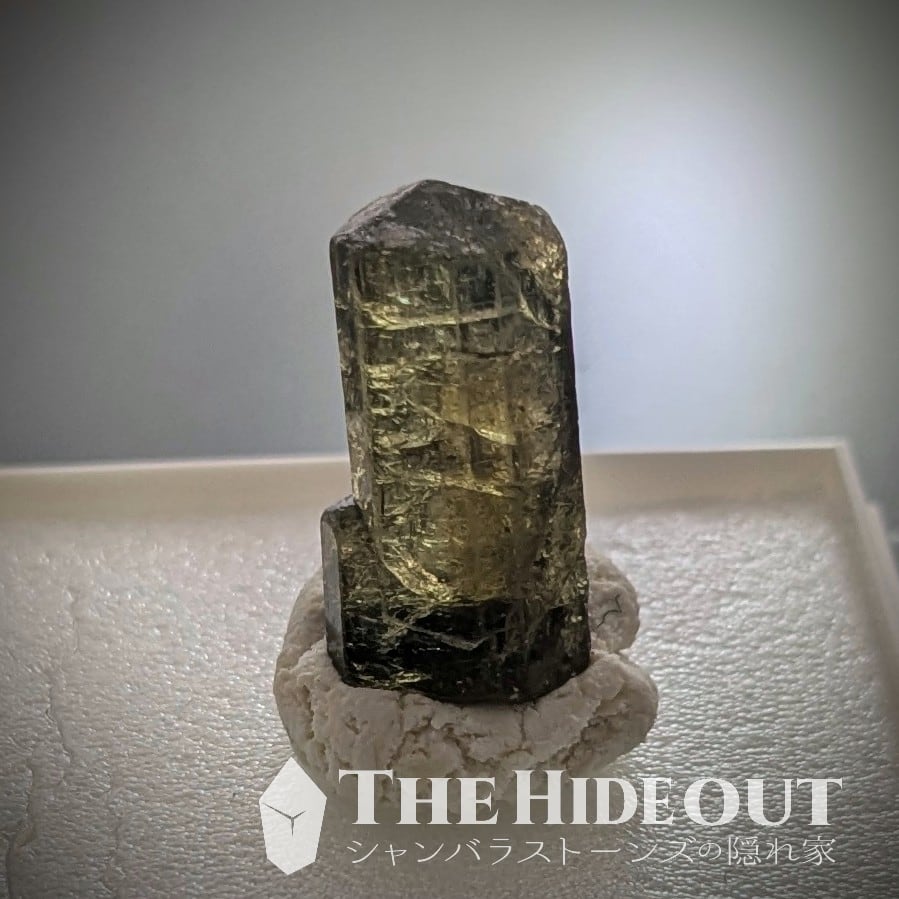 しゅっと細長いシェイプは高層ビルのよう。こちらのドラバイトは色に境界線が見られます。向かって右側下部が少しブラウンを帯びています。それにしても特有の色み…グリーンのようなイエローのようなブラウンのような。シュワシュワとした内部がシャンパンのように見えるのも可愛いですね。ひとつは持っておきましょう。