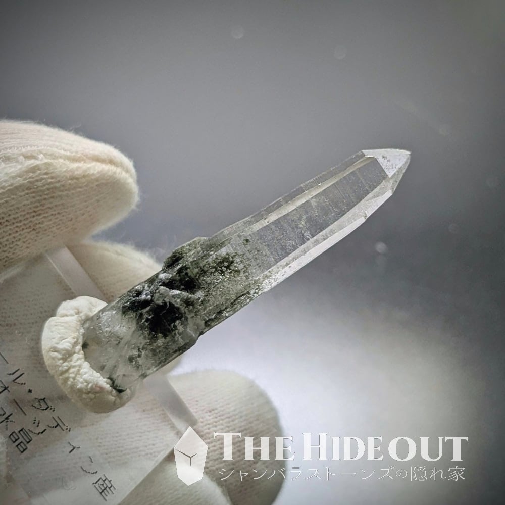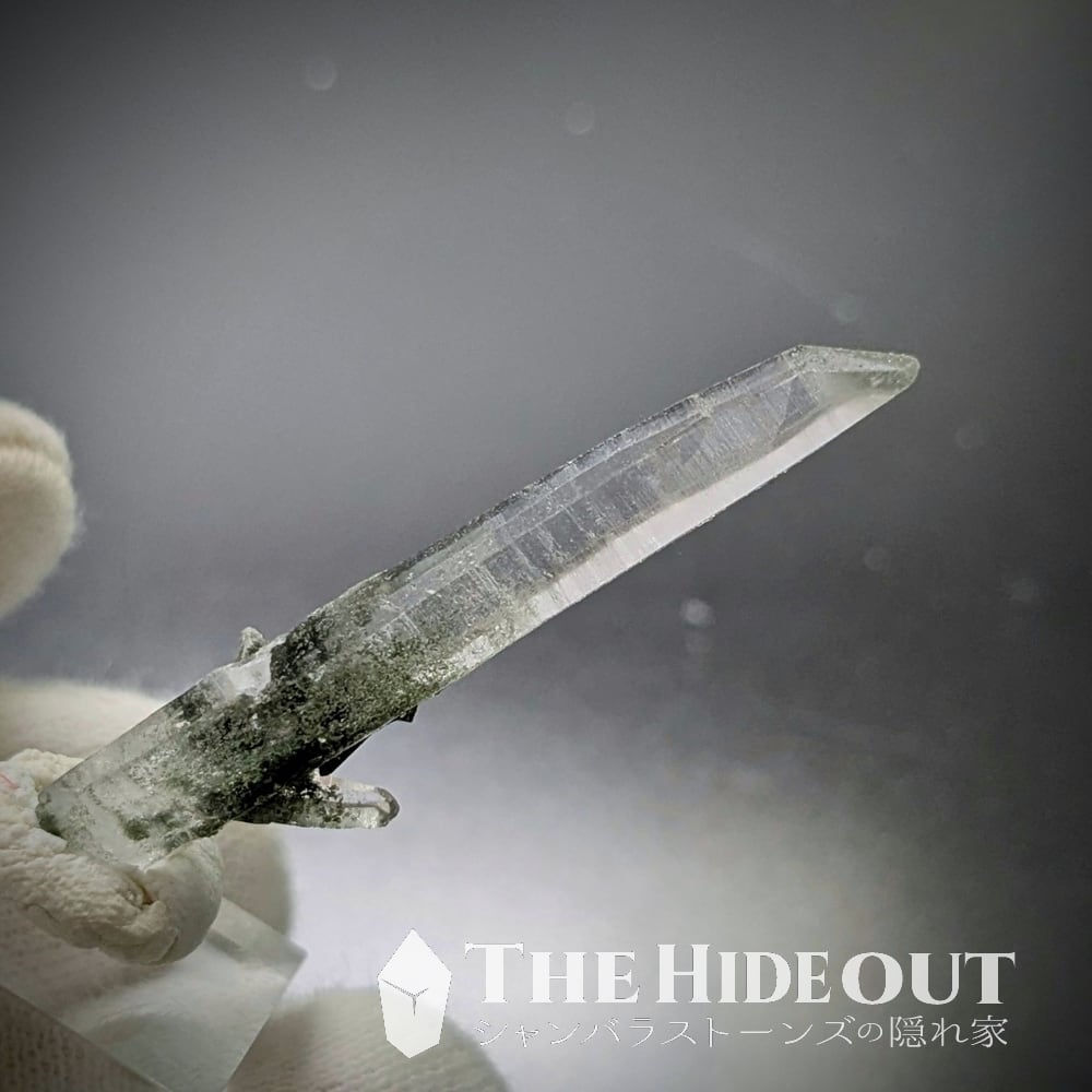 この凛とした表情を見よ。こういうシュッとスタイリッシュなシェイプ格好良いと思いません?個人的にシュッと形状が好きでして。パキッと硬質な透明感も対比となる緑泥石も素晴らしいです。何よりもこのシェイプでダメージが無いのが最高。