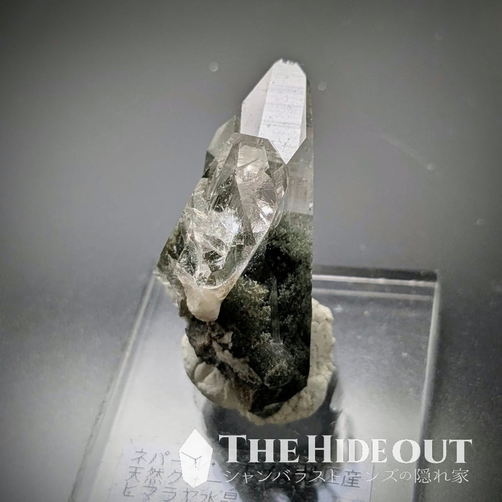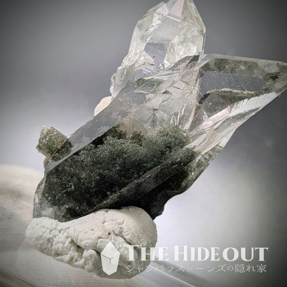 あああ、これこれ。これですね。もくもくと生命力溢れる緑泥石。見ている我々まで力が漲ってきそうです。緑泥石の入り方はベストのベストと言っても良いほどに完璧で美しいです。こういうヒマラヤ水晶がヒマラヤ水晶だと思う方は今やマイノリティでしょうか。コレクションしておく価値は大いにあるでしょう。