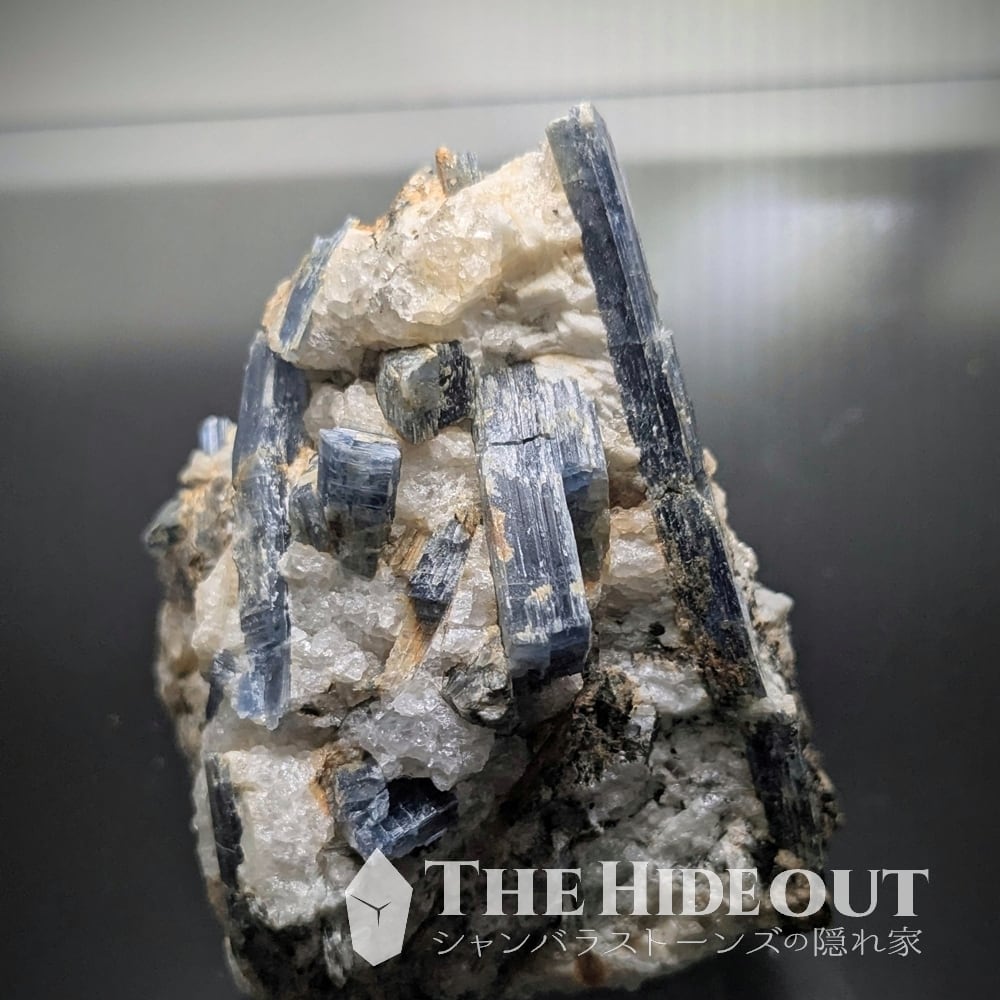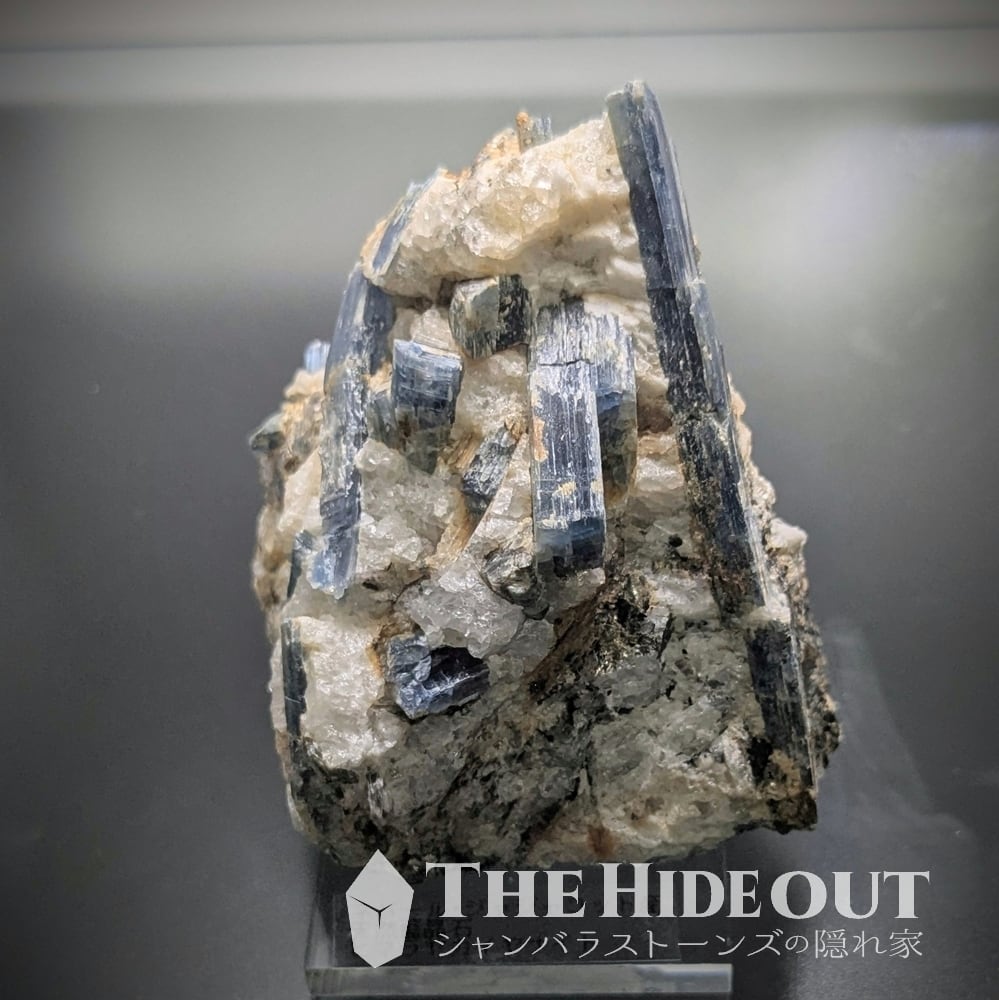 やや黄色い酸化鉄分が目立つので、少し値段を抑えてみました。この大きさと長い結晶を加味するとお買い得感が強いのではないでしょうか。カイヤナイトの母岩付きを持つなんて、あなたマニア道を爆進みですね。