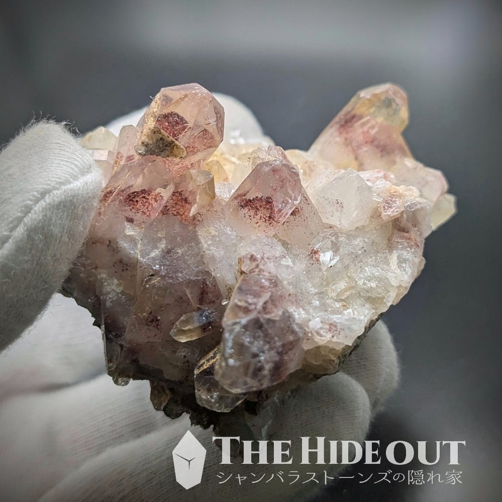 余談ですが「レッドファントム」というと酸化鉄成分が浸透して内部で▲を創り出しているものが検索に多く引っ掛かると思います。そちらは「後生」タイプのインクルで酸化鉄成分が水晶内部に浸透したものです。他方こちらのレッドファントムは「初生」もしくは「中期」インクルでレピクロが生成した後に水晶に取り込まれた(もしくは水晶と同時に生成)ものです。内包物そのものが違いますからクオリティーうんぬんの比較ではありませんが、レピクロによる立体ファントムのほうが希少性は高いです。完璧で綺麗な結晶の原石はかなり少ないのではないでしょうか。今後これらを仕入れることも無いので在庫品アウトレット/B級品扱いです。※在庫にあるものは今後も安値で追加・放出してゆきます。