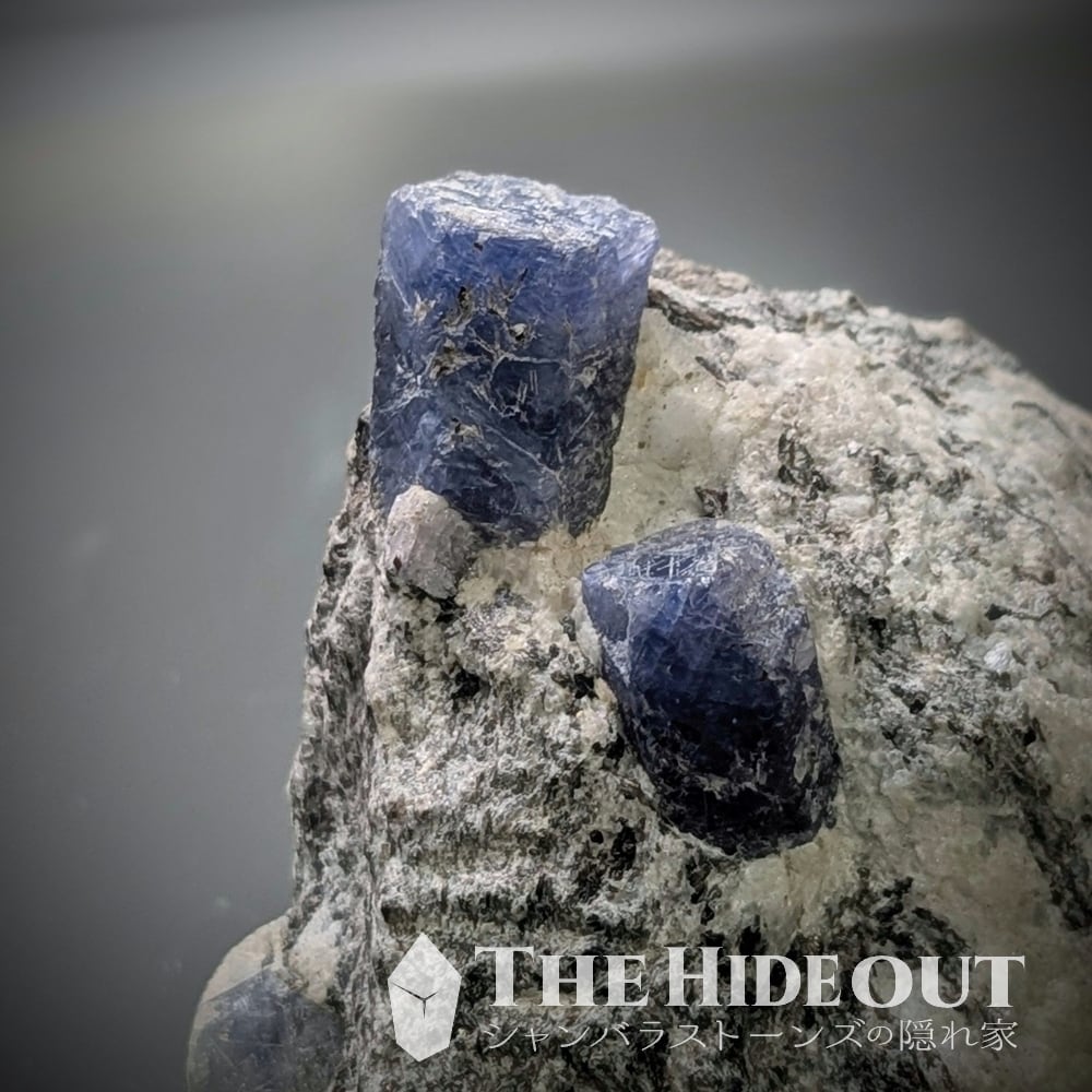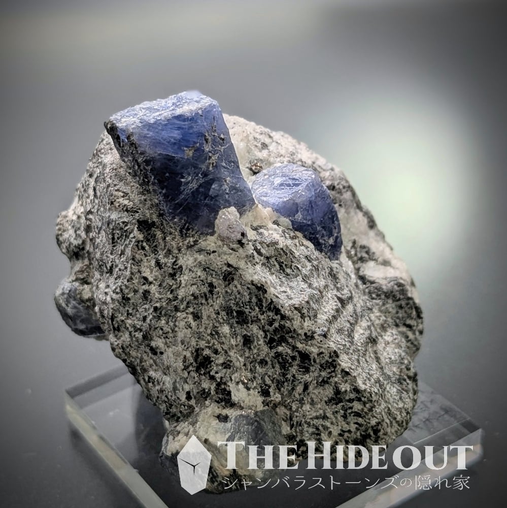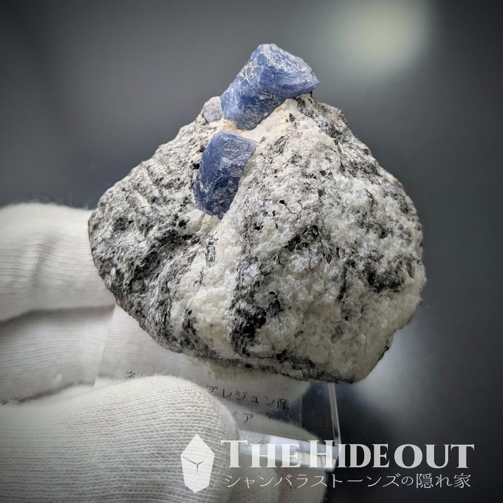 ヒマラヤ産鉱物原石標本022 タプレジュン地区産コランダム(サファイア) 登攀するコバルトブルー隊