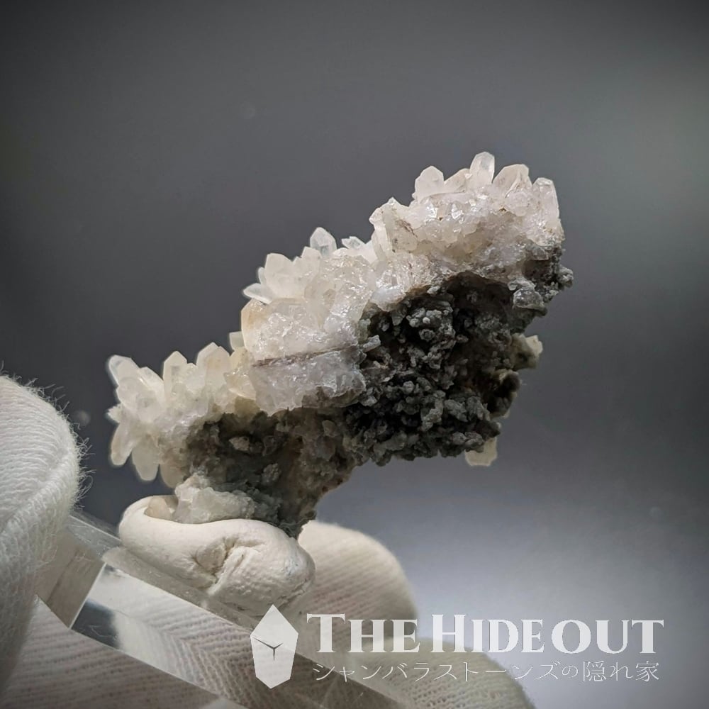 珍産地です!秩父鉱山橋掛沢産。そう、ここはグロッシュラーと同じ鉱山です。グロッシュラーの解説で記載していますが、この産地が活況を呈していたのは何十年も前の話。当時はグロッシュラーと共に水晶も採掘されており、橋掛沢の水晶は稀にパイライト入りやパイライト付着も確認されていたそう。※残念ながら今回のロットには見られませんでした。水晶の結晶が細く小さいのですが、結晶群が「菊の花」のように放射状に広がるのもこの産地の特徴です。「菊花水晶」などと呼ばれるようですが風情がありますね。