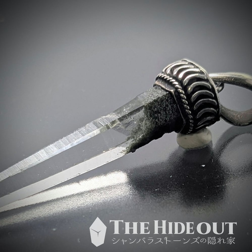 ザ・典型的タンタブレ鉱山の水晶ですね。硬質な透明感に鮮やかで流動的な緑泥石、こうでないといけません。ポイントもしっかり尖って綺麗です。凛とした姿に思わず背筋が伸びるでしょう。個人的な好みもありますがシュッとスマートなシェイプに格好良さを覚えてしまいます。小ぶりで着けやすく、しかもスタイリッシュ。お勧めです。