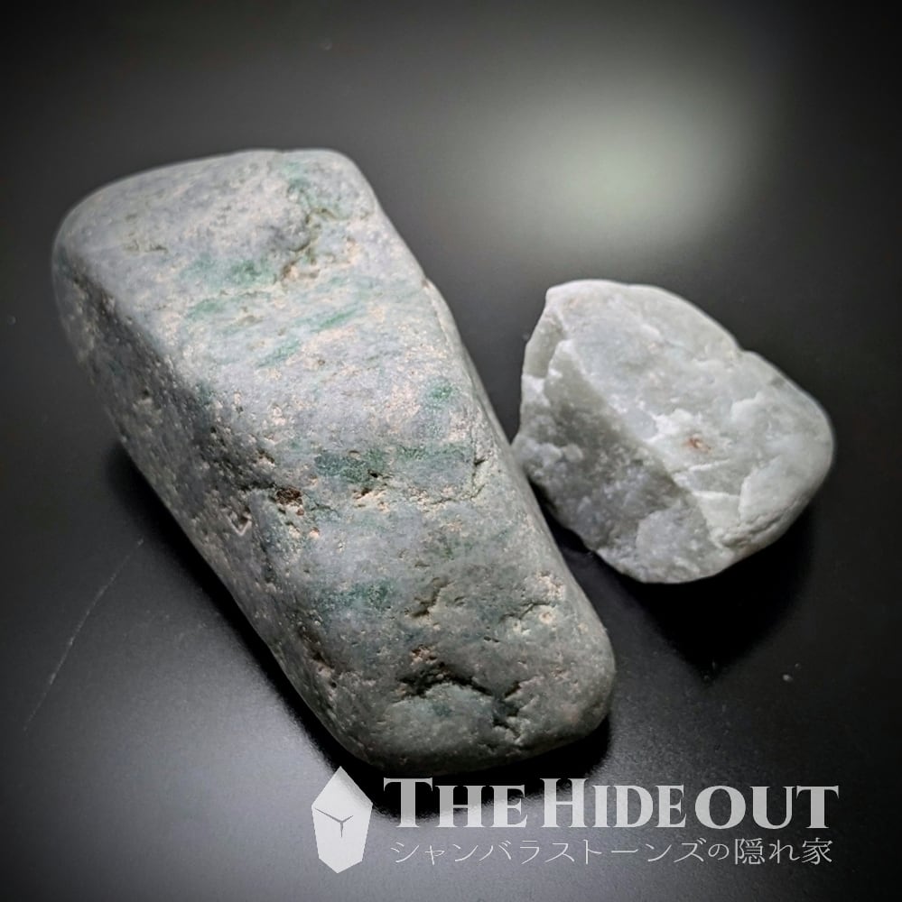これ良いですねー。大きな方の霜降りグリーンが最高。良い感じにサシが入っています。ここを削ってカボション作ったら綺麗だろうなぁ、、、と思っちゃいますが持ってっちゃってください(もともとこのロットはカットのつもりで仕入れたのです)