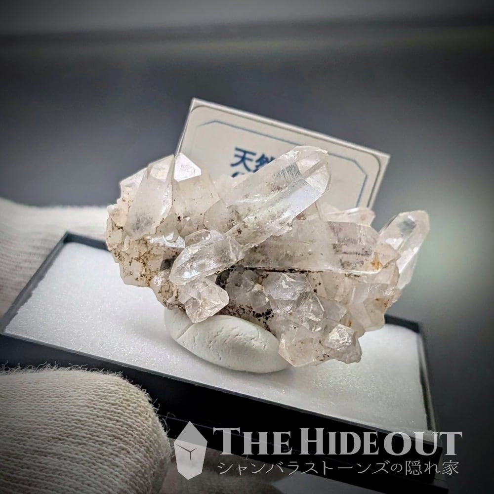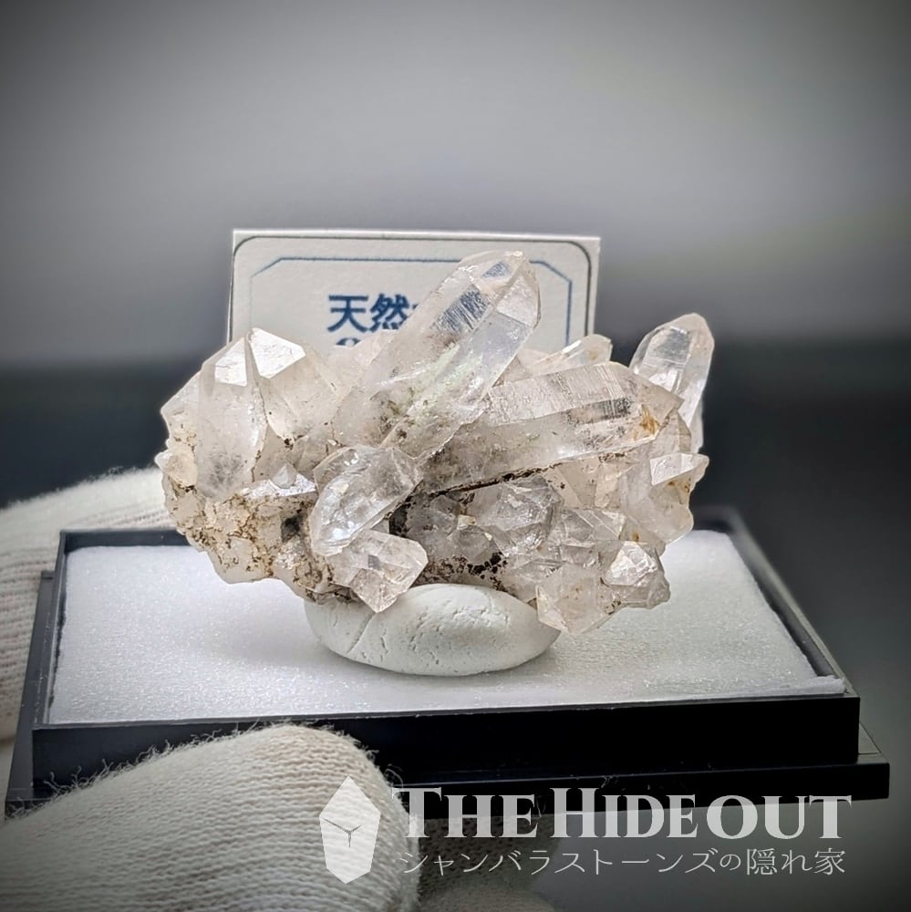 日本国産鉱物標本047 宮崎県臼杵郡日之影町押ヶ八重鉱山産水晶 ちびクラスターに不思議もやもや内包物も見られる