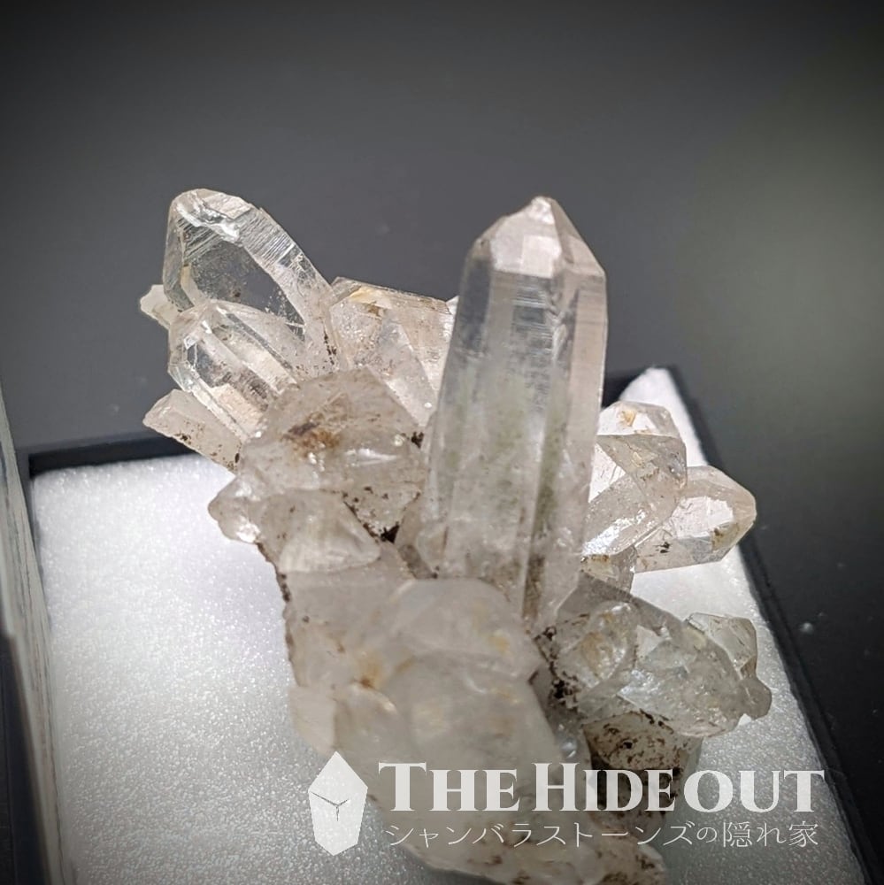 かわいいちびクラスターです。クラスターは「水晶」という感じがして良いですね。押ヶ八重は大きなクラスターも出るのですがダメージしているもの・白濁しているものも多く、このくらいパキッと透明でダメージが無いのも珍しいかと思います。水晶としてみた場合、飛びぬけて魅力に溢れるかと言われると「一般的な水晶」という印象ですが産地の面白さ・珍しさ・希少性においてこのお値段ならばコレクションする価値ありだと思います。