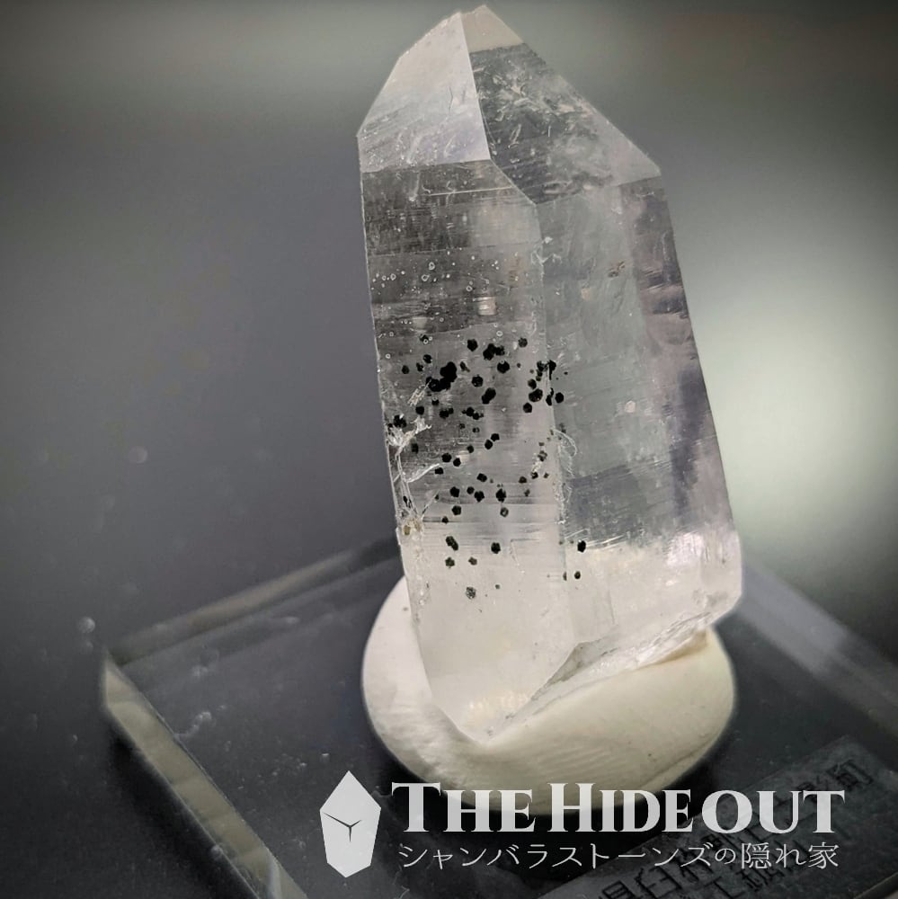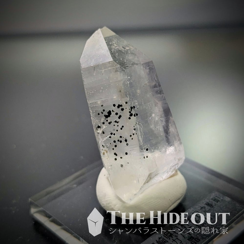 日本国産鉱物標本049 宮崎県臼杵郡日之影町押ヶ八重鉱山産水晶 お勧めテカテカ&黒ゴマ「イン」