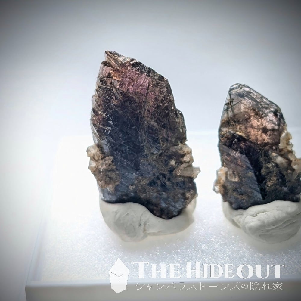 このペアも良いと思います。如実に個性の違う2つのペア。左は鋸のような階段状稜線が非常に面白い。これは水晶でいうところの干渉のようなものか?はたまた斧石の結晶の癖なのか。方や右は超透過。強い光に透かさずとも透けているのがわかるでしょう。最上部に関しては透明か?と思うほど。