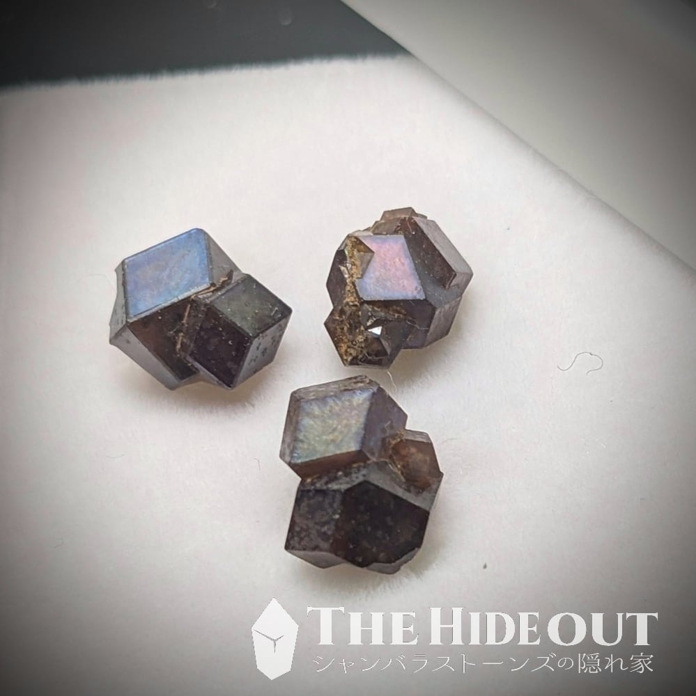全部推せるポイントに書いちゃいました。この極小軍団お勧めです。小さいのにクオリティー高いです。ビックリするくらい鮮やかな色が発現しますし、濁りの少ない鏡面の輝き。小さいのに整ったクラスター形状はダメージ無し。ここに掲載した写真や動画以上に良いので手にした方はひとつひとつをしっかり観察して、、、写真や動画でも投稿して頂いて見せびらかして下さい。