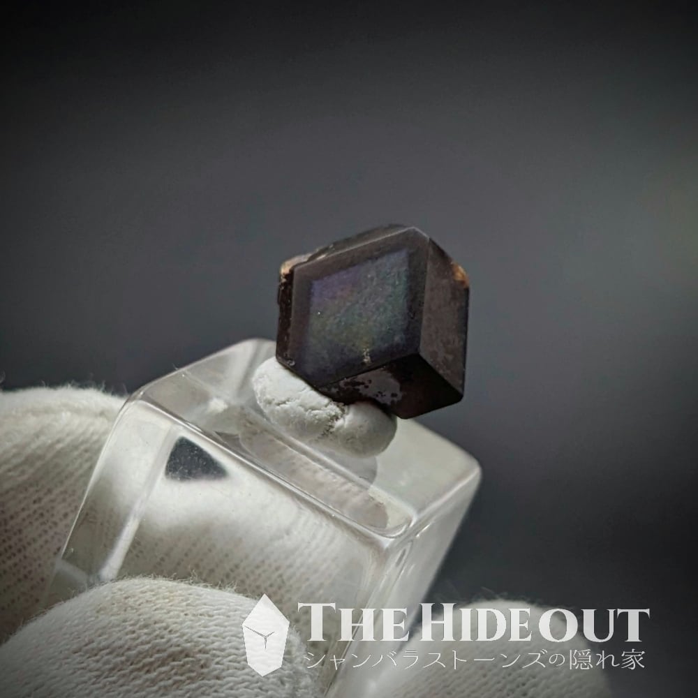 尚、この「レインボーガーネット」は鉱物種としては「アンドラダイト(灰鉄柘榴石)」になります。それ自体はオレンジを帯びた褐色ですが、表面を覆う金属皮膜が光の反射によって金属特有の極彩色を示すという特徴があります。
