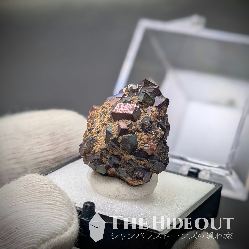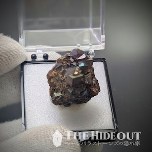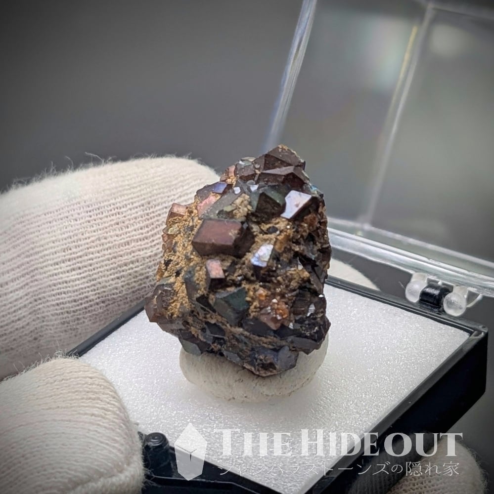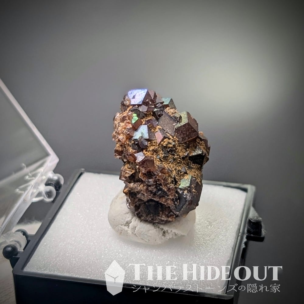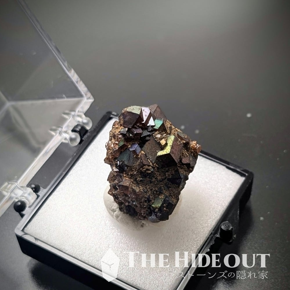 何度も言いますがレインボーガーネットはクラスターが珍しい。希少なのです。何故なら脆いから…完璧な状態のクラスターは少ないのです。色々な色が大小様々煌めくのはクリスマスツリーのよう。サムネイルケースに収まっている様も好きです。クラスターや母岩付きは何だか「標本集めてるなぁ」という気分にさせてくれると思いませんか。