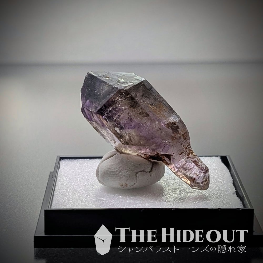 ジンバブエのアメジストスモーキーは外観はジャガレーやセプター形状、更にはスケルタルになりがちで、内観として明瞭なアメジストとスモーキーのゾーニングがあります。インクルージョンとしてゲーサイトやレピドクロサイト、ヘマタイトを含むことも多く、動くバブルが見られる「水入り」も散見されます。円安の影響もありますが、今後も市場における価格は高騰を続けると思いますが、隠れ家では「アウトレット品の処分」なので在庫にあるものは安く出します。