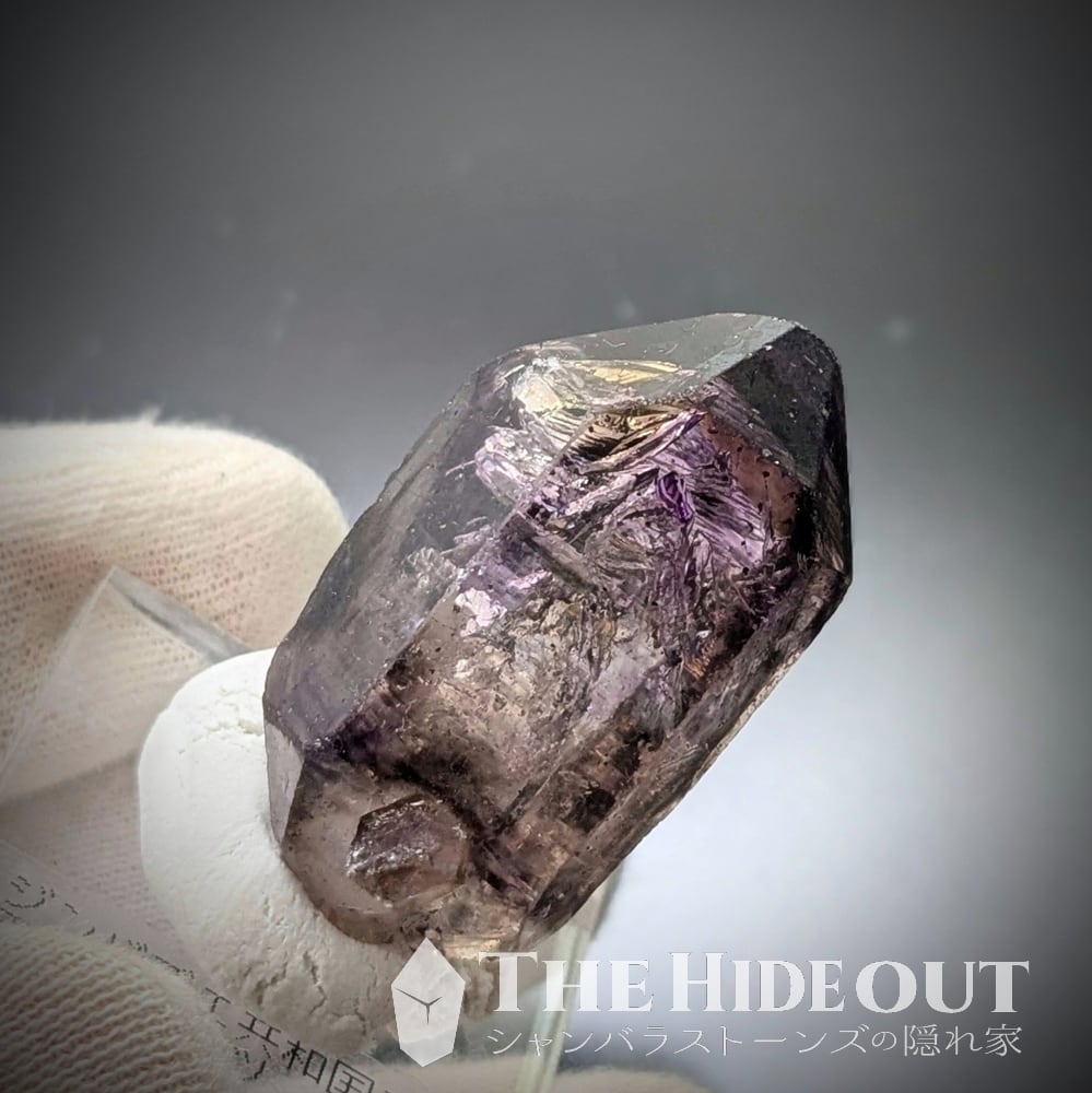 ジンバブエのアメジストスモーキーは外観はジャガレーやセプター形状、更にはスケルタルになりがちで、内観として明瞭なアメジストとスモーキーのゾーニングがあります。インクルージョンとしてゲーサイトやレピドクロサイト、ヘマタイトを含むことも多く、動くバブルが見られる「水入り」も散見されます。円安の影響もありますが、今後も市場における価格は高騰を続けると思いますが、隠れ家では「アウトレット品の処分」なので在庫にあるものは安く出します。