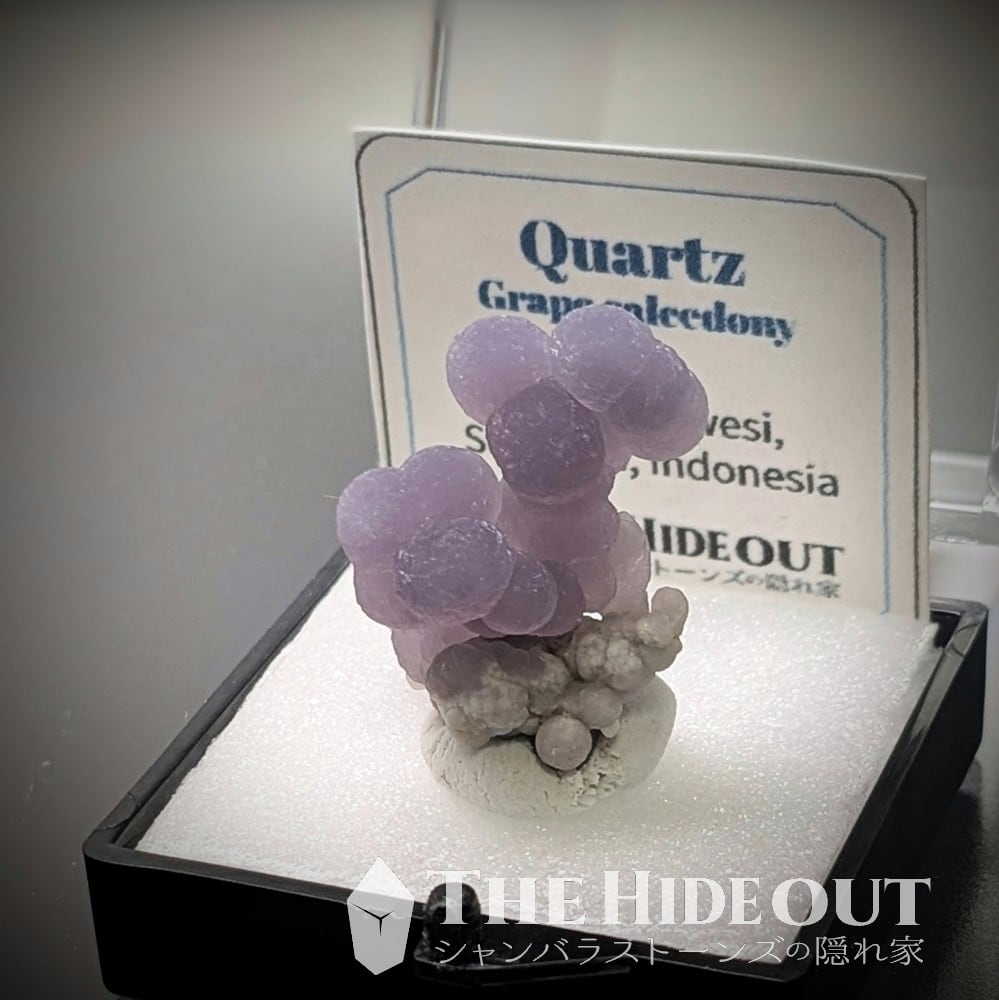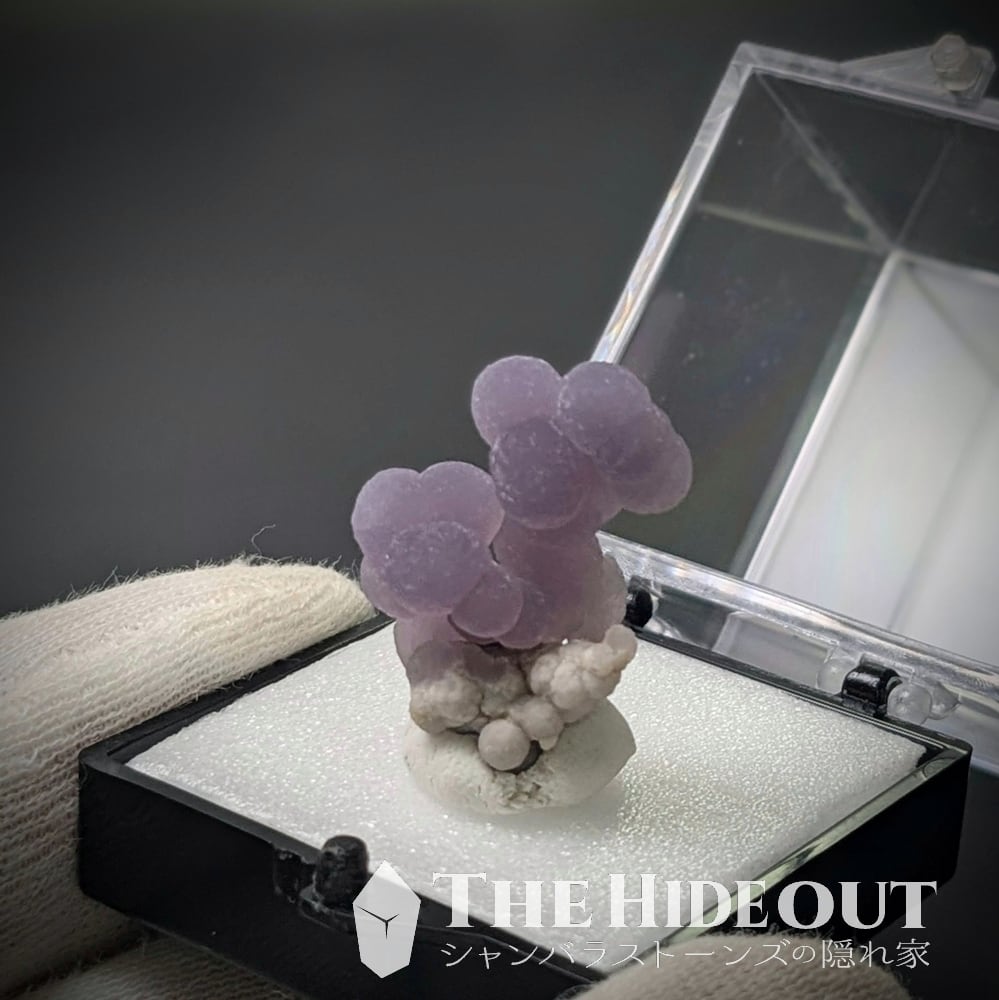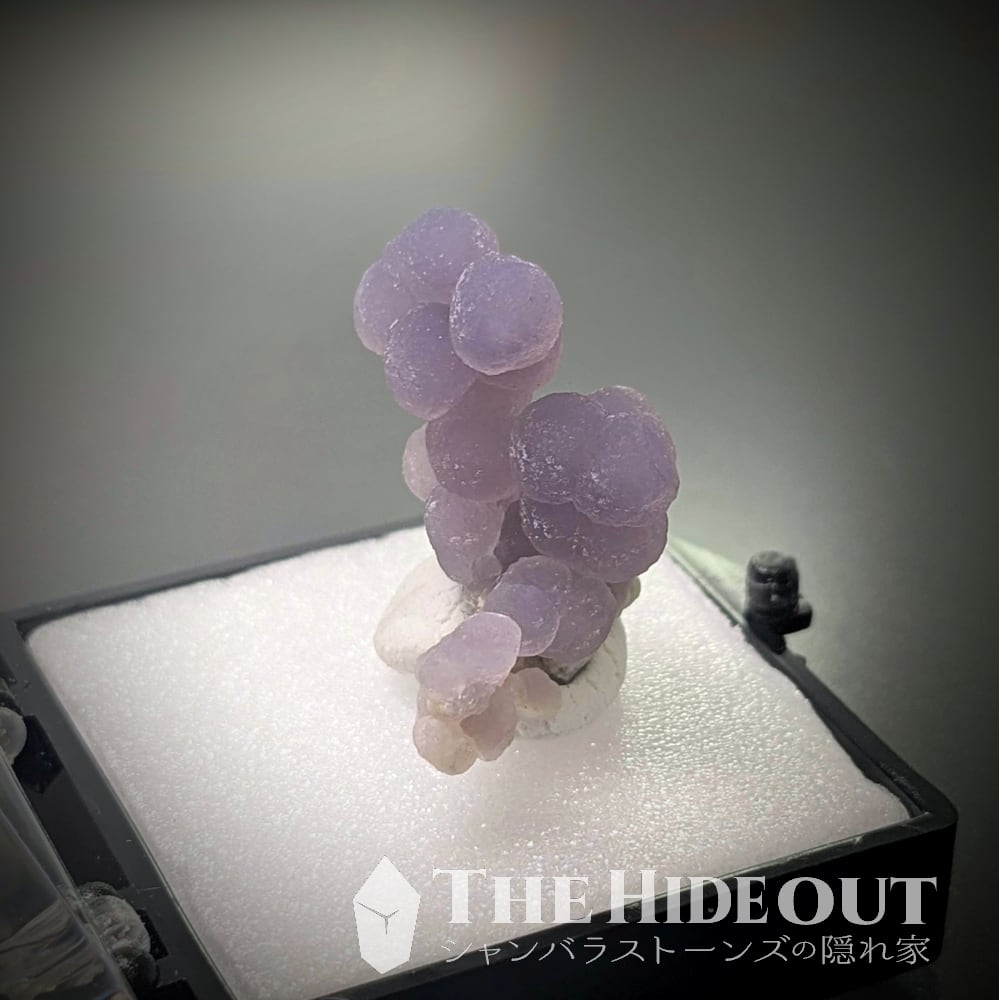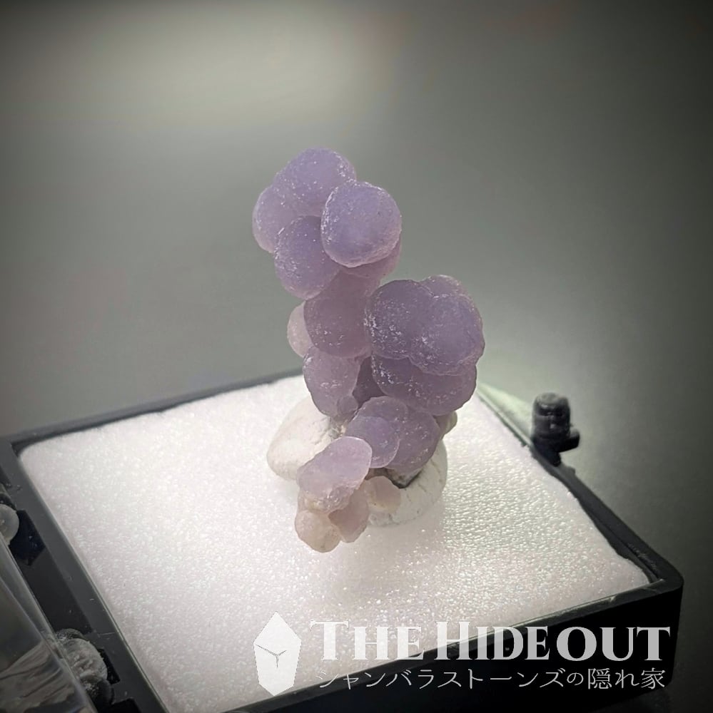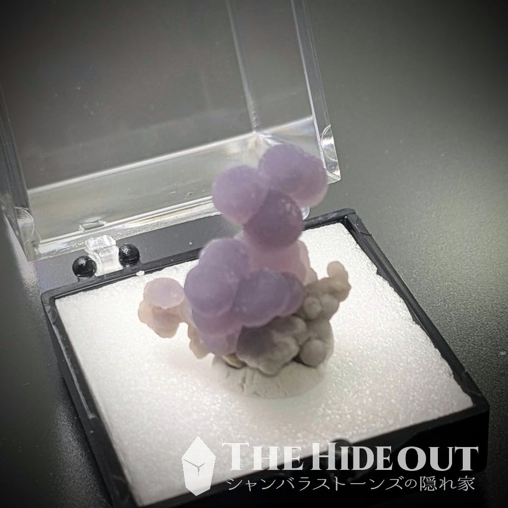 ほぇー、これぞ造形美。これぞグレープカルセドニーな標本です。母岩部分を含めて完璧な景観でしょう。ケースに収まるサイズ感も含めて最高です。
