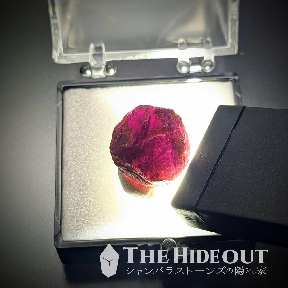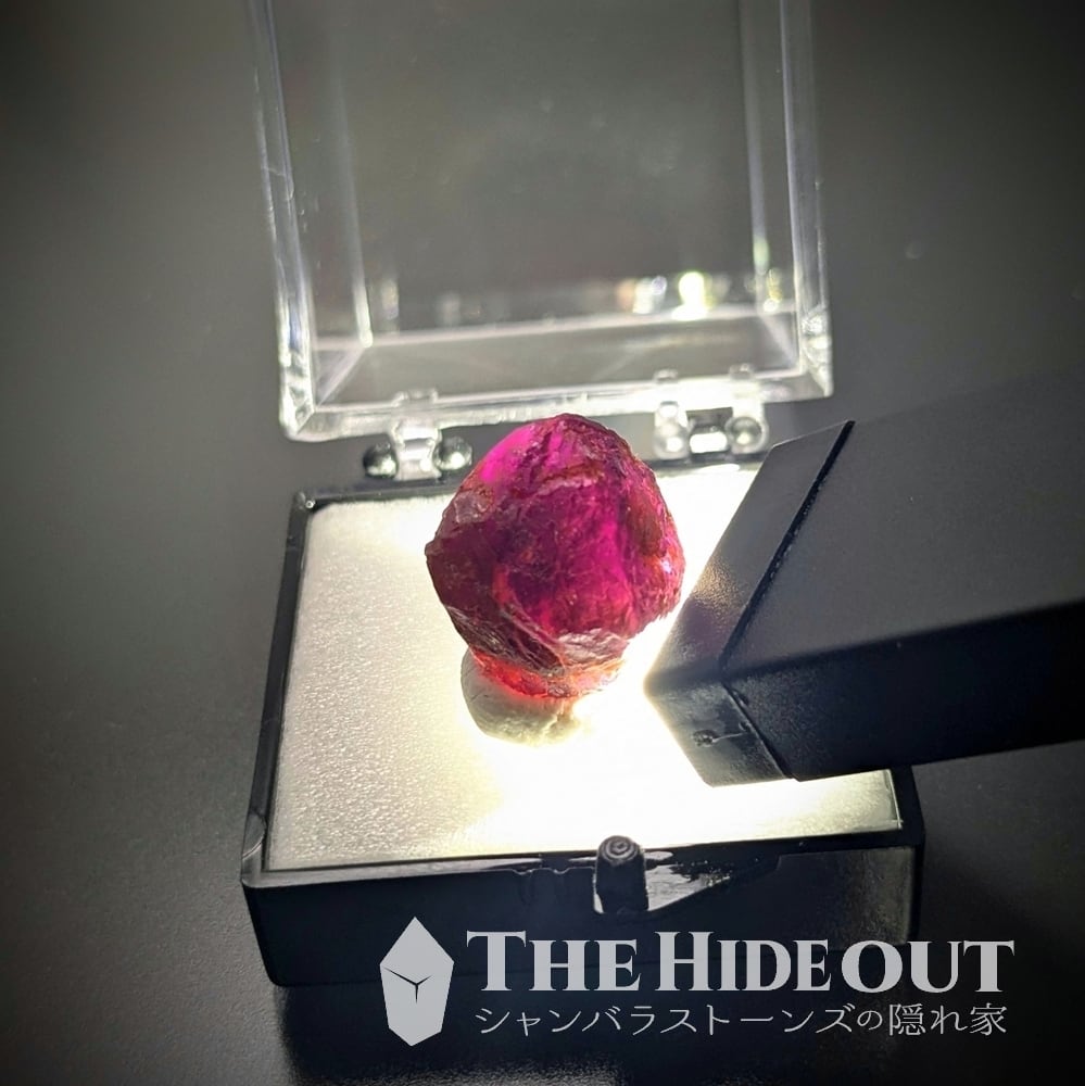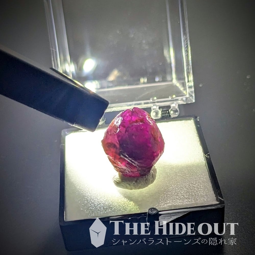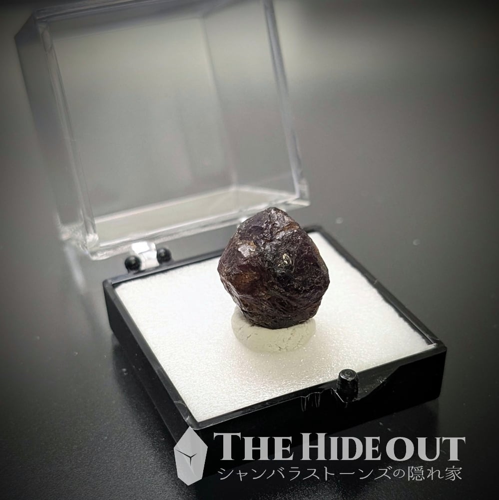 ガーネットらしい菱形面を見よ。この産地は母岩である雲母片岩が非常に硬くてソリッドです。その影響で結晶が大きて明瞭に育ちにくいです(※例えばスワチィは母岩が柔らかいので大きくて自形の明瞭な結晶が育ちます) ジャウジャラ鉱山のガーネットにおいて結晶面が美しいのはかなり珍しいですね。しかも大きいです。サイズ比較で見てもらえるとわかりますが、034番035番に比べると随分と大きいですよね。自然光ではあまり透けませんが、ご覧の通り強い光を当ててやればしっかりとロードライトのピンクパープルが確認できます。コレクション大いに価値あり。