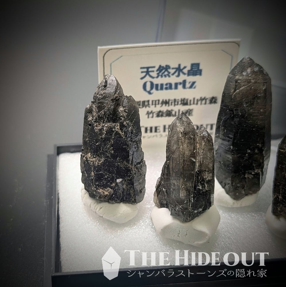 言わずもがな、日本の水晶鉱山で最も有名な産地の一つである塩山竹森/水晶山産です。この産地のハイライトは何といっても通称「ススキ入り」「草入り」と呼ばれる苔土電気石(ドラバイト)内包物でしょう。世界的に見てもドラバイトの内包は稀有で、これらが生み出す世界観は唯一無二のものとなります。インクォーツ好きには堪りません。尚、ドラバイトと共に鋭錐石や緑泥石、白雲母、硫黄等も内包・付着することがあり、景観に更なる彩を添えます。
