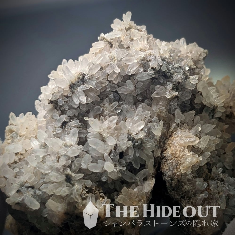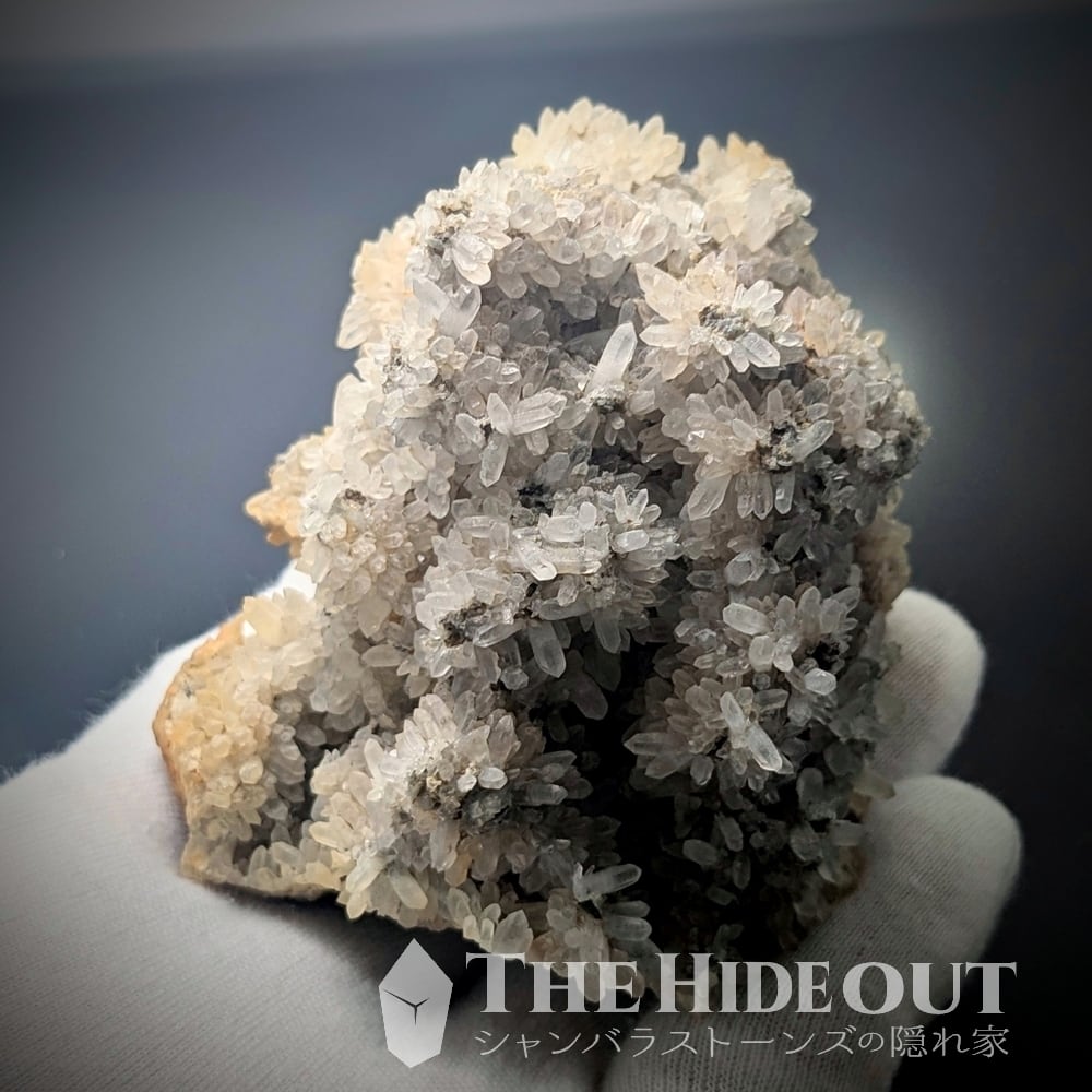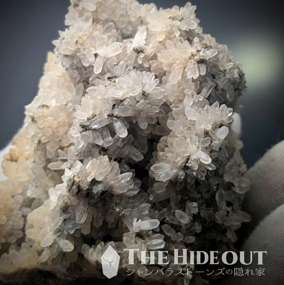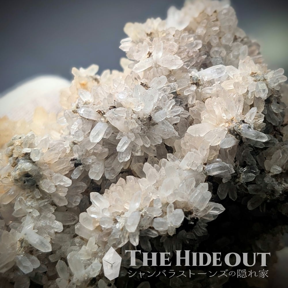 珍産地です!秩父鉱山橋掛沢産。そう、ここはグロッシュラーと同じ鉱山です。グロッシュラーの解説で記載していますが、この産地が活況を呈していたのは何十年も前の話。当時はグロッシュラーと共に水晶も採掘されており、橋掛沢の水晶は稀にパイライト入りやパイライト付着も確認されていたそう。※残念ながら今回のロットには見られませんでした。水晶の結晶が細く小さいのですが、結晶群が「菊の花」のように放射状に広がるのもこの産地の特徴です。「菊花水晶」などと呼ばれるようですが風情がありますね。